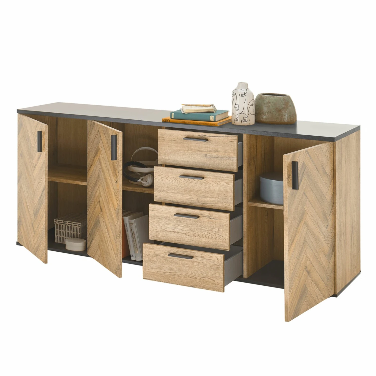 Sideboard – Bartex Eiche-grau – 4 Schubkästen – 185 cm