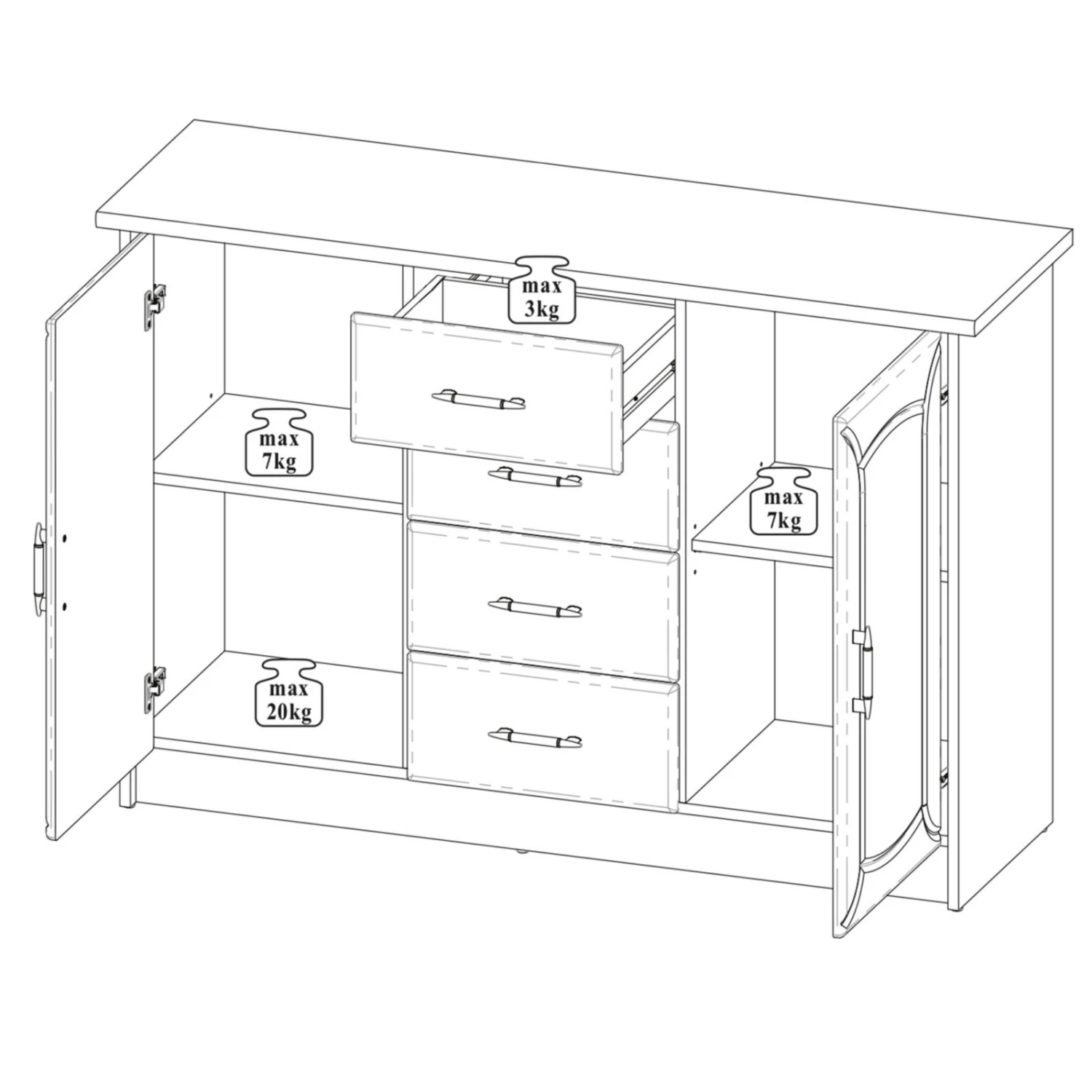 - 4 Schubkästen
