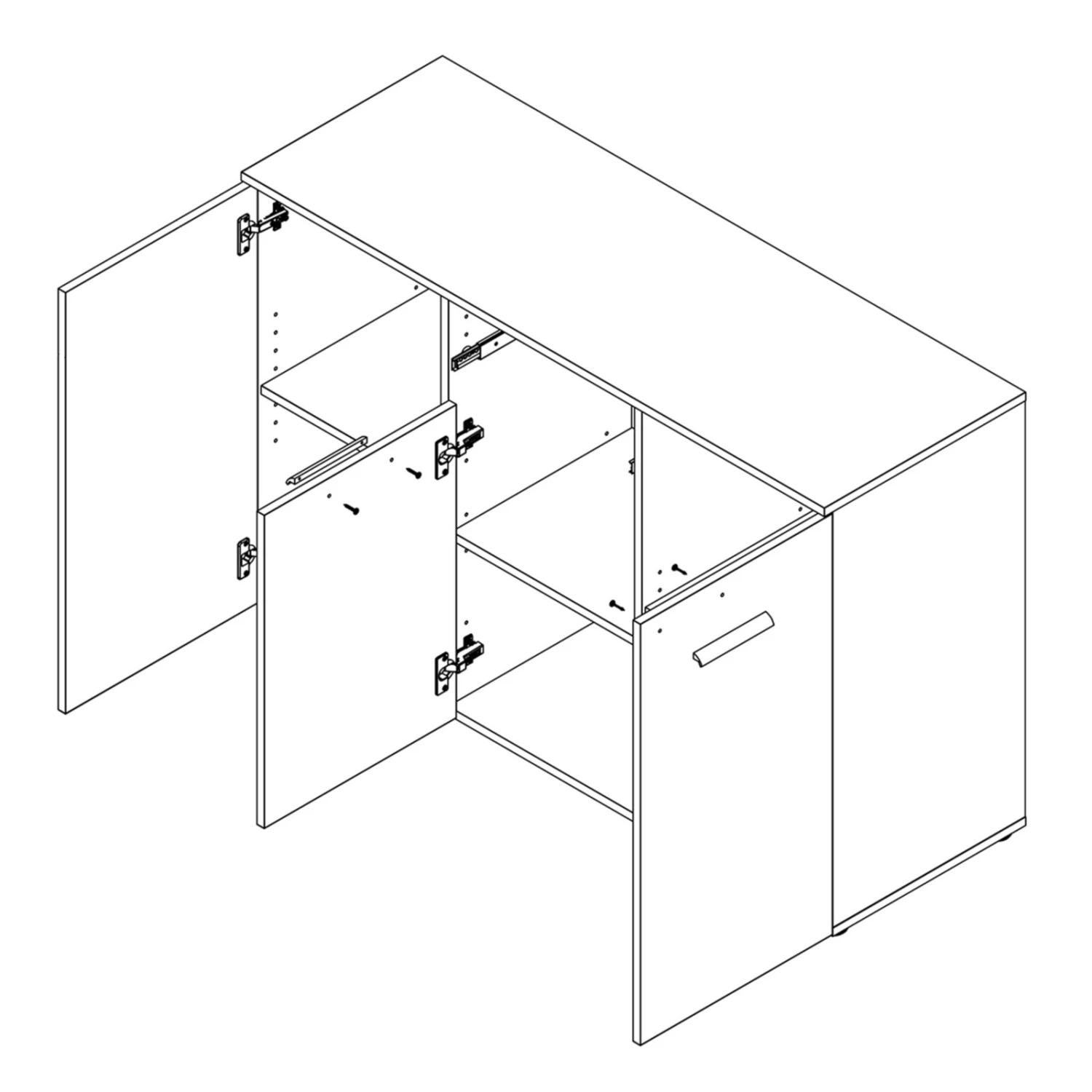 Für mehr Stauraummöglichkeiten ist dieses moderne Sideboard genau die richtige Lösung! Hinter drei Türen finden Sie jeweils einen Einlegeboden, sodass Sie insgesamt 6 Fächer zur Verfügung haben. Zudem bietet dieses etwa 120 cm breite Sideboard einen Schubkasten, in dem Sie kleinere Utensilien unterbringen können.
