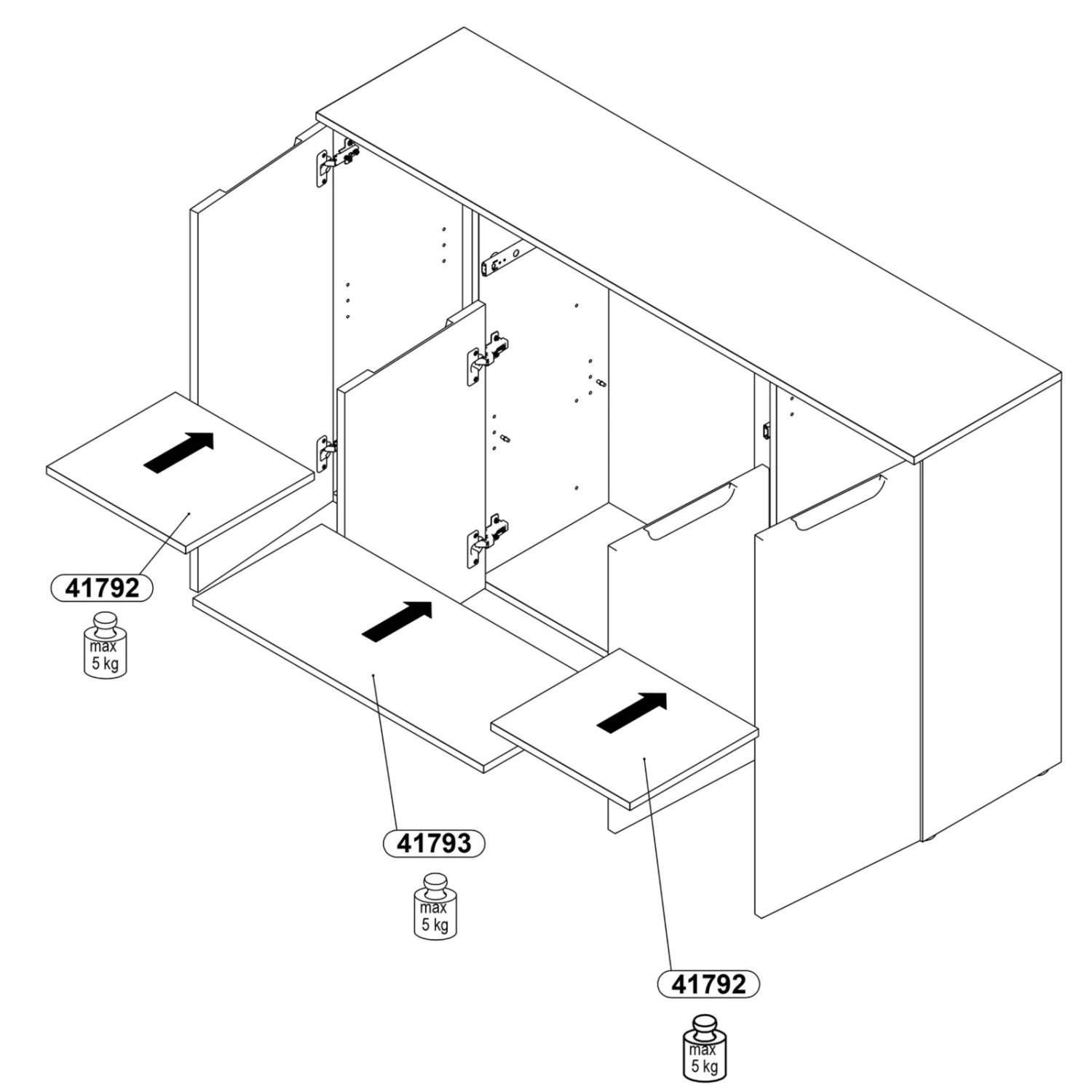 - ein Schubkasten und 4 Türen