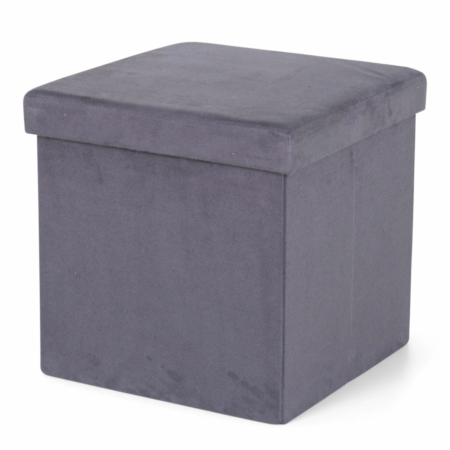 Quadratischer Sitzhocker mit grauem Microfaser-Bezug aus 100% Polyester und einer maximalen Belastbarkeit von 50 kg. Eine praktische Sitzgelegenheit mit vielen Kombinationsmöglichkeiten.