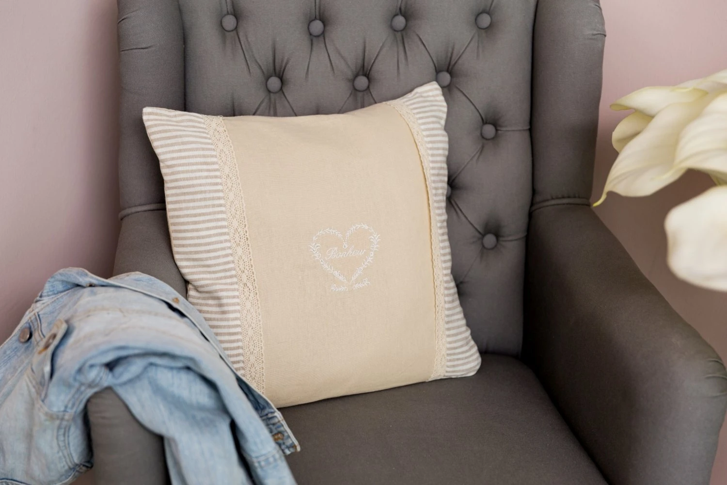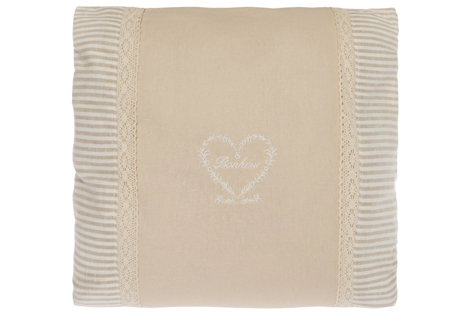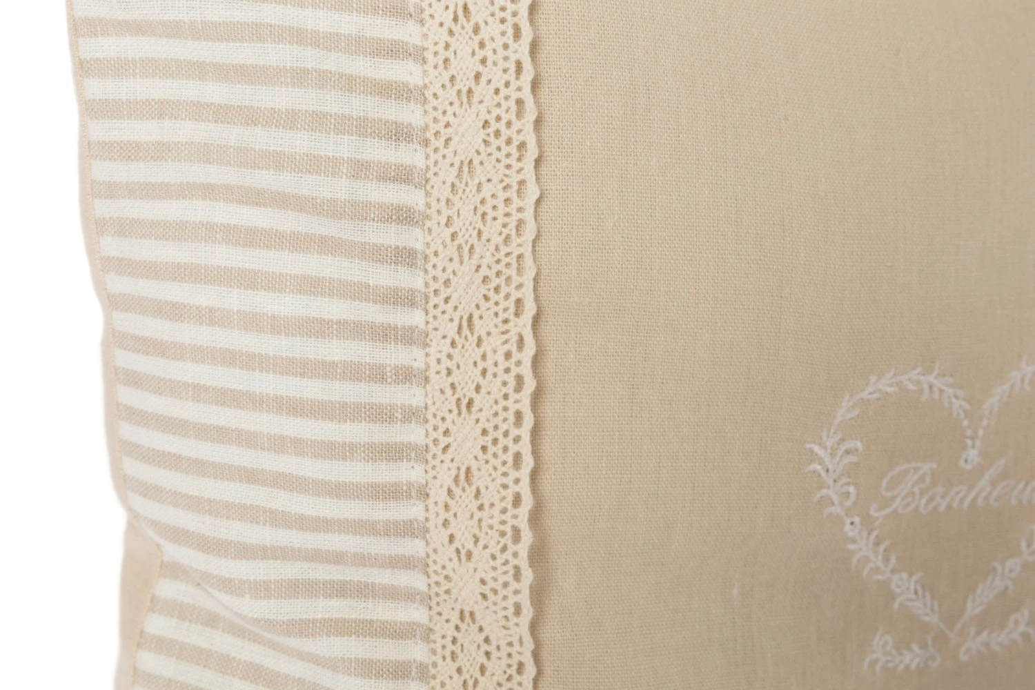 Das Kissen BONHEUR BIG ist mit einer feinen Stickerei verziert. Es präsentiert sich in Creme und verschafft einen gemütlichen Sitz.