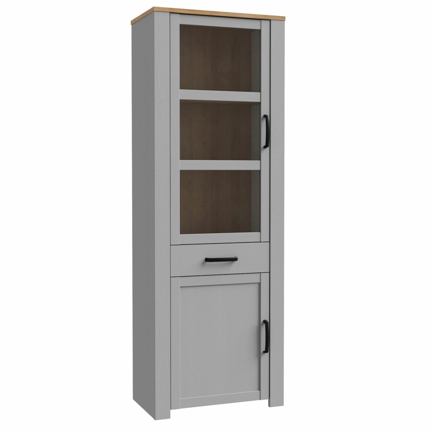 Standvitrine – Eiche grau – Riviera Eiche – 72 cm breit