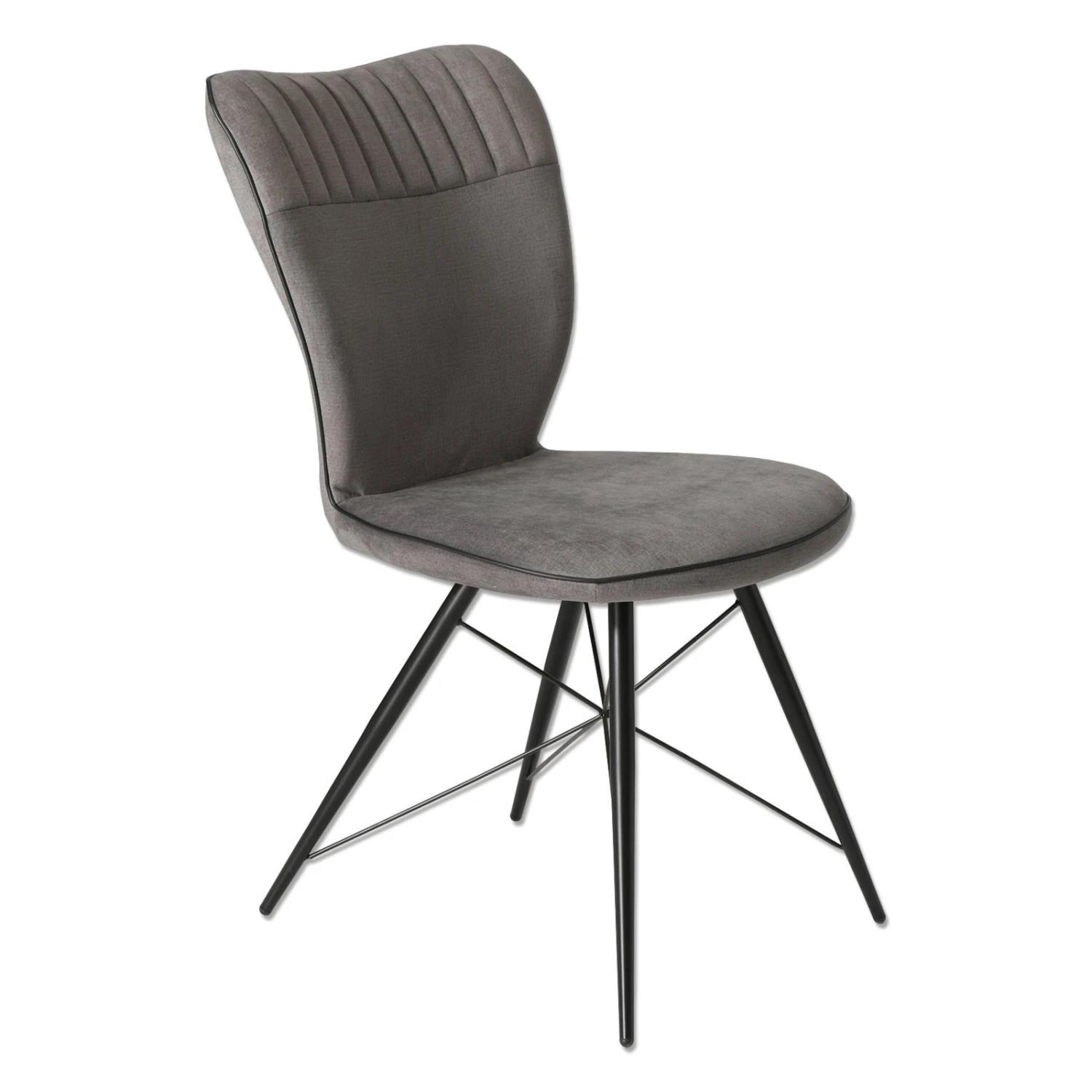 Ein wunderschöner Stuhl für Ihren Essbereich oder als Sitzmöglichkeit in der Garderobe. Auch als Schminkstuhl ist dieser Stuhl geeignet. Er ist mit einem dunkelgrauen Webstoff bezogen, der mit einem schwarzen Keder abgesetzt ist. Das sieht super elegant aus und wertet den Stuhl optisch auf. In Kombination mit dem Metall-Gestell, welches pulverbeschichtet ist und sich in Schwarz matt präsentiert, ist er unschlagbar.