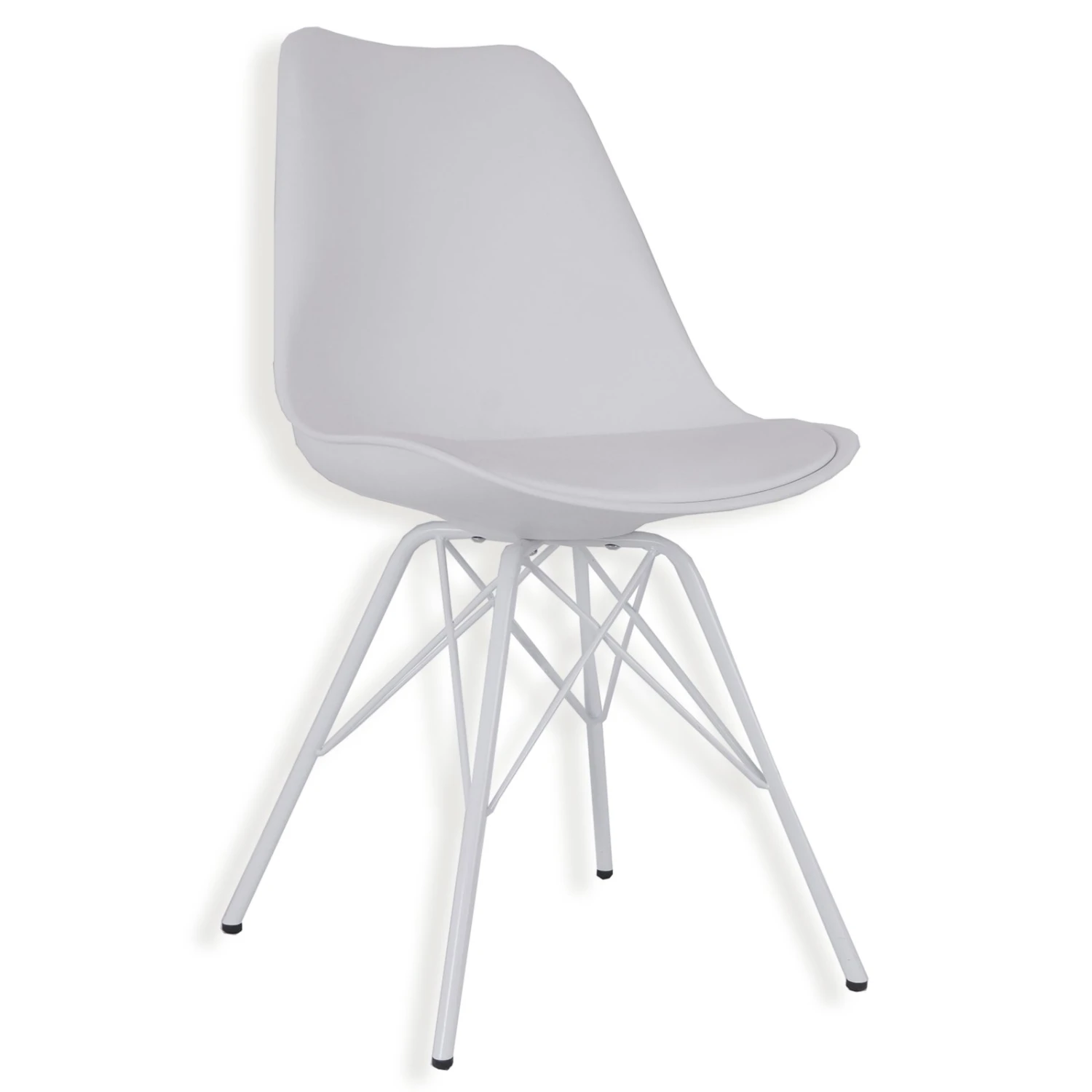 In einem stilvollen Weiß präsentiert sich dieser Stuhl! Die Sitzschale besteht aus Polypropylen und für mehr Komfort wurde der Sitz mit einem Kunstlederbezug gepolstert. Die maximale Belastbarkeit liegt bei diesem Stuhl bei etwa 110 Kilogramm.