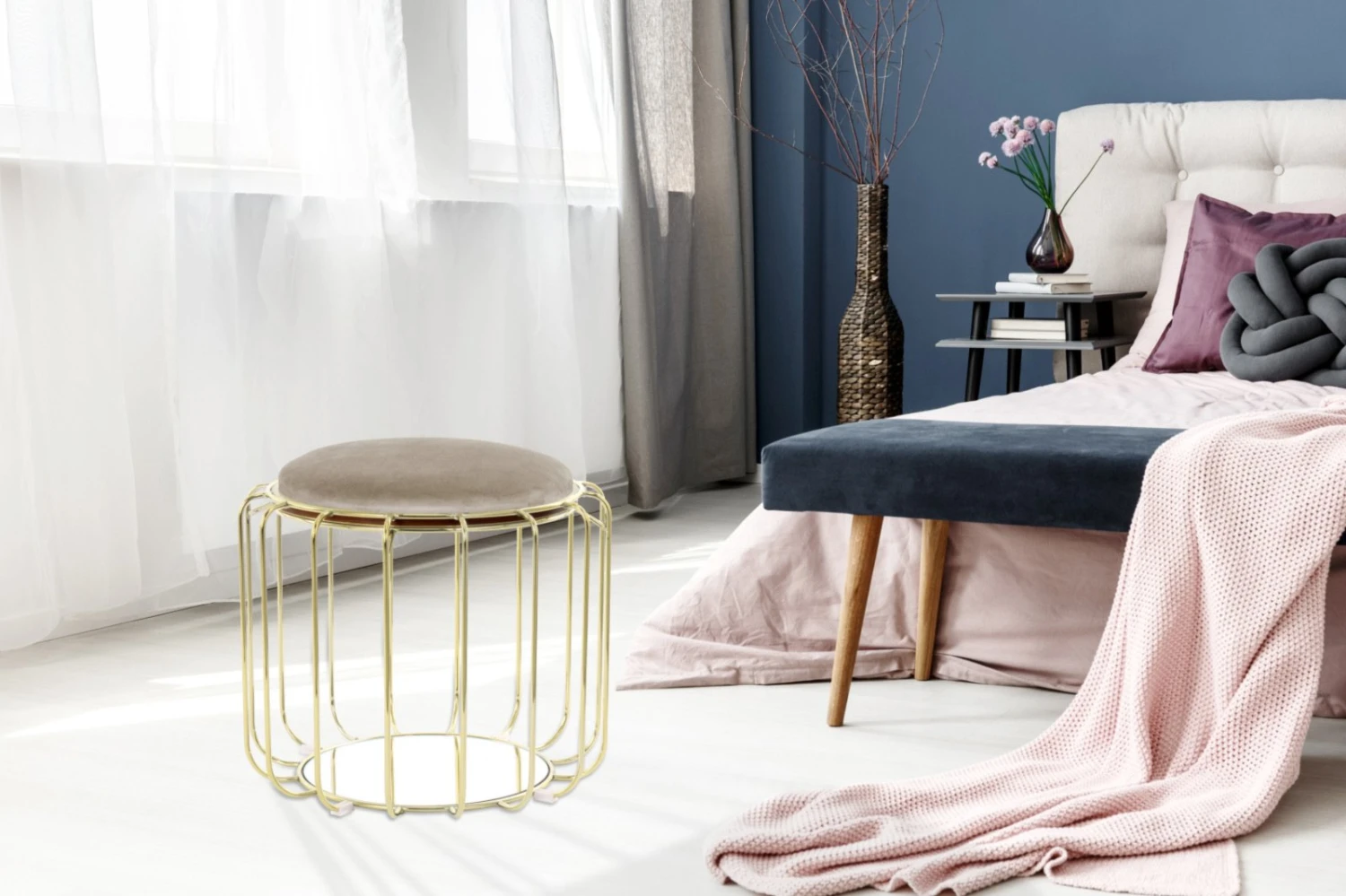 Tisch-Hocker COMFORTABLE – graubraun-gold – Metall