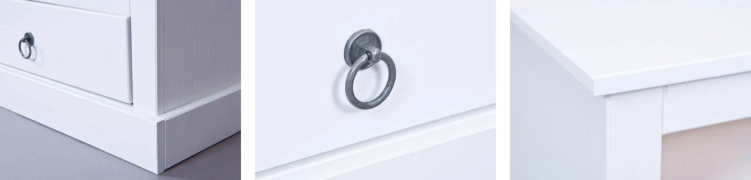 Modernes TV-Lowboard im Landhausstil. Mit den zwei Schubladen und dem großzügigen offenen Fach bietet sich genügend Platz zum Verstauen Ihrer Receiver, DVD-Player, Spielekonsolen oder Utensilien. Die Griffe aus Metall erzeugen ein stimmiges Gesamtbild.