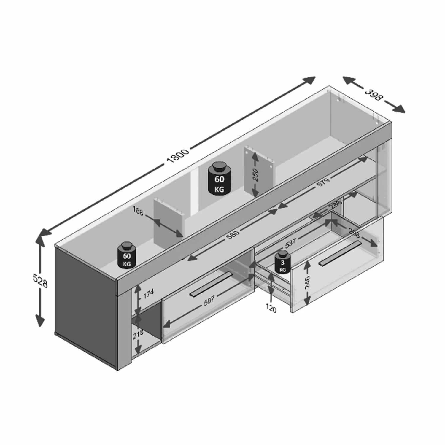 - Maße: BxHxT ca. 180 x 53 x 42 cm