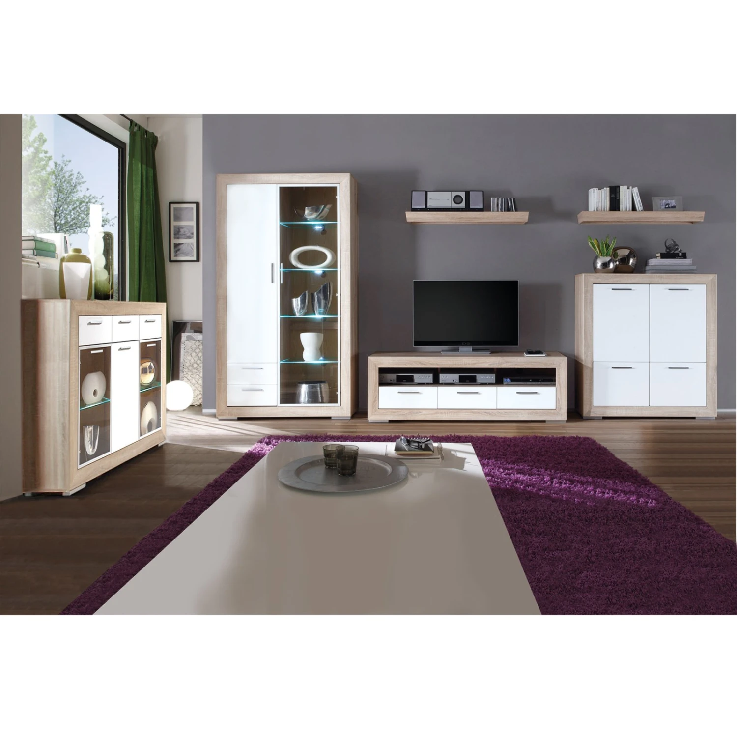 Vitrine – Sonoma Eiche-weiß – LED-Beleuchtung